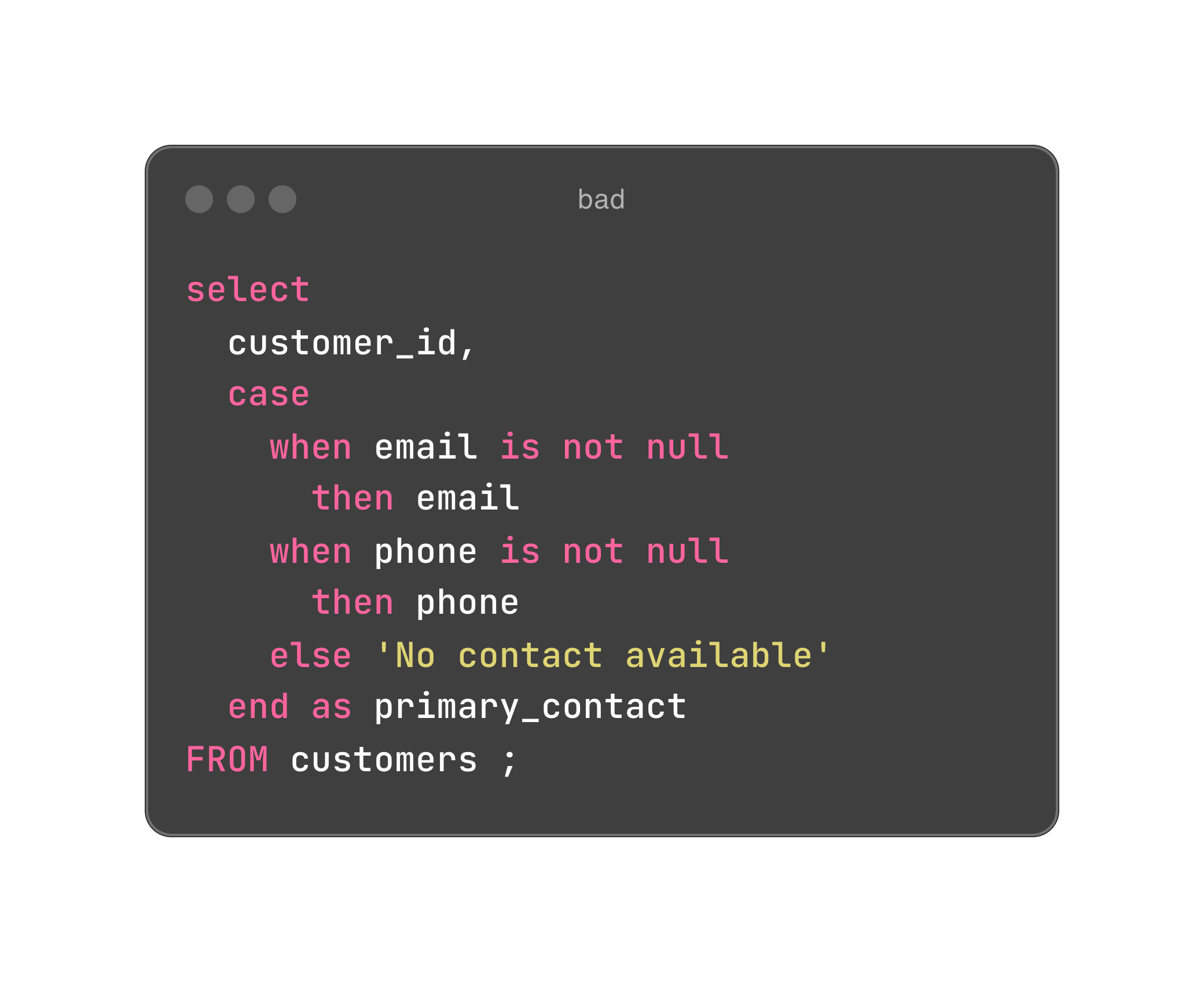 The CASE statement is a powerful tool in SQL, but it's often overused in scenarios where simpler alternatives exist. One common example is handling NULL values, where overly complex CASE expressions are frequently written unnecessarily.